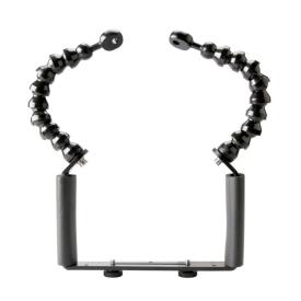 Staffa Subacquea per Action Cam e Fotocamere Compatte, composta da base con impugnature e doppio braccio flessibile con terminale Ys Lung. 20cm (compatibile Sea&Sea, Inon, Epoque)
