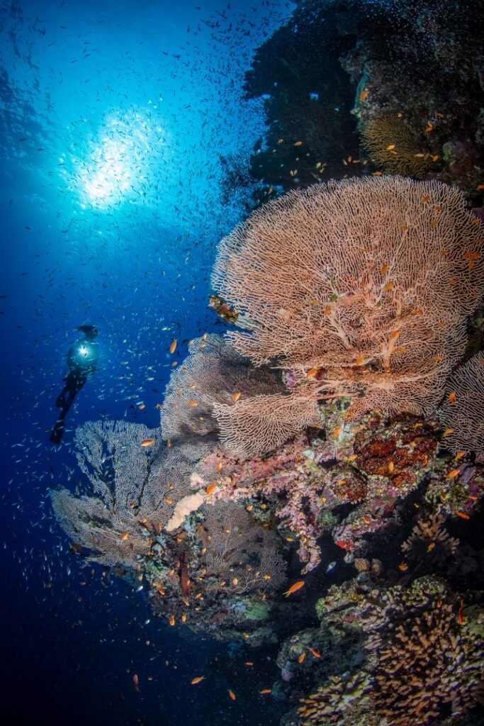 Svariate sono le specie di pesci potranno essere fotografate in questi ambienti: coloratissimi pesci tropicali convivono con branchi di pesce pelagico come barracuda, carangidi, squali di scogliera, per finire con le imponenti sagome degli squali martello che si presentano inaspettatamente provenendo dal blu.